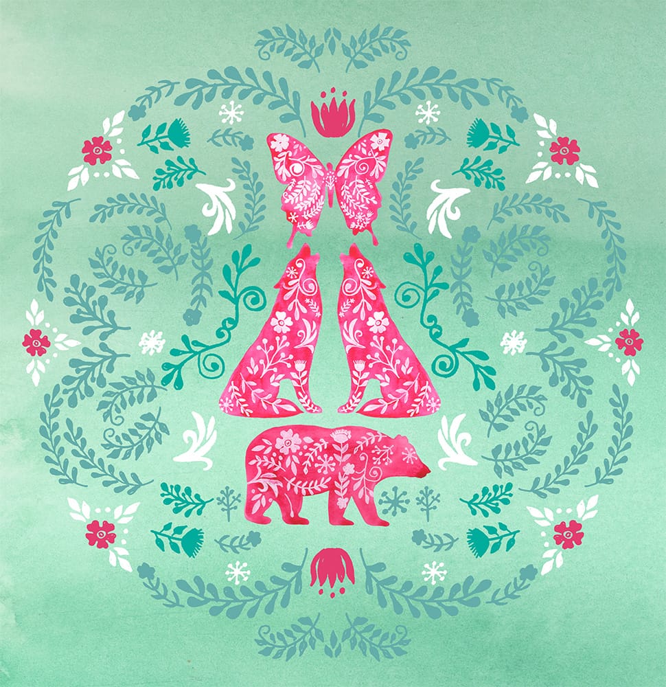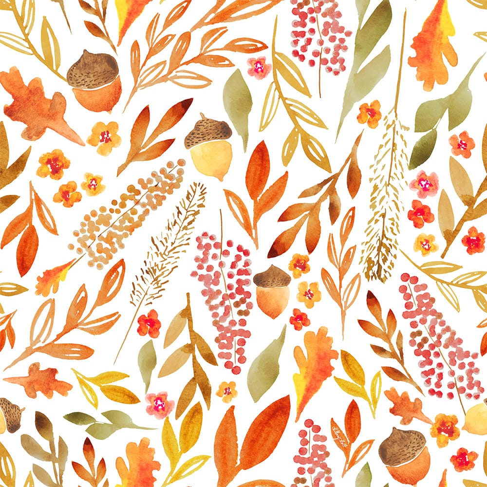 I work in collections, usually with a set of hero images and co-ordinating repeat patterns in matching colorways. I also love special requests and take commissions so we can create something really unique for your brand!