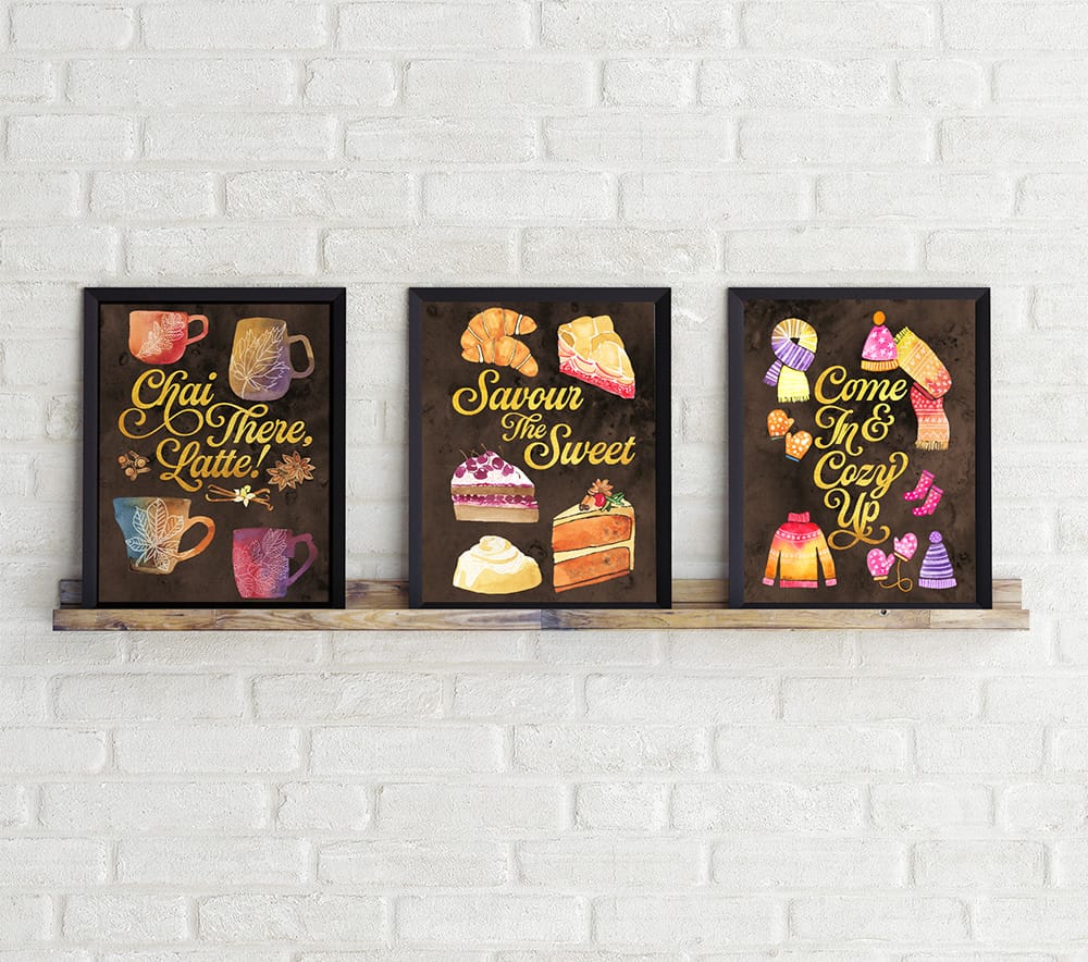 I create artwork with bright, vibrant colours, inspired by the natural world, botanicals and pop culture, working mainly with watercolours and digital hand drawn art.