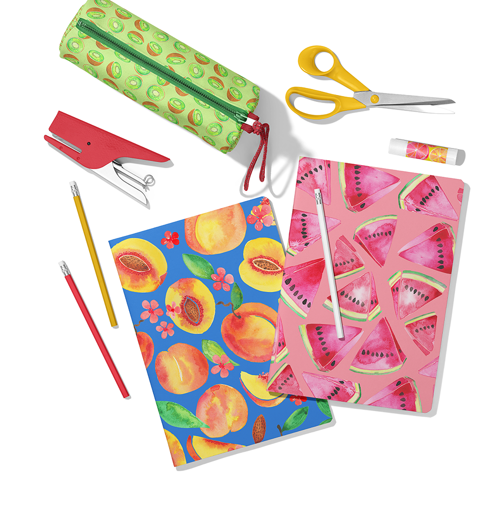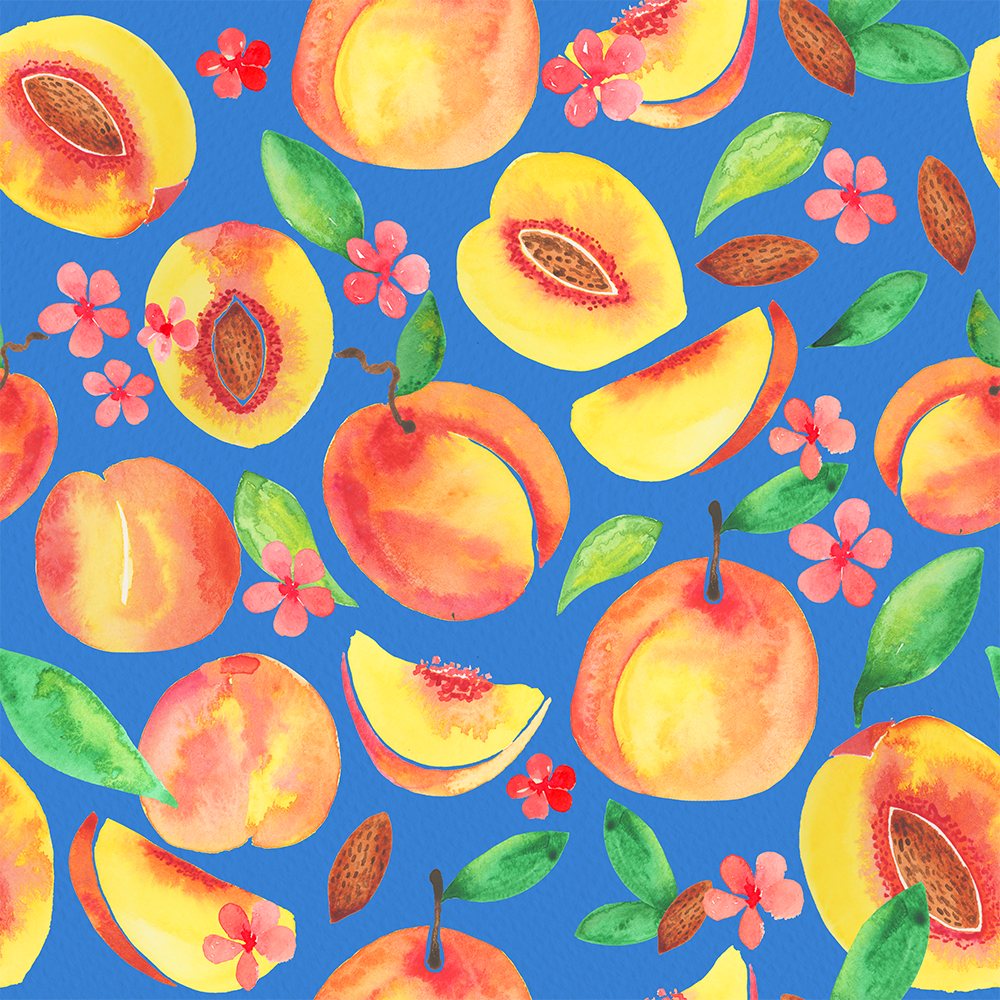 Celebrating summer, these maximalist bright hero compositions and repeat patterns of tropical summer fruits in vibrant colors are sure to brighten up gift wrap, accessories, stationery, home decor, cards or gifts. Choose from Pineapple, watermelon, peach, kiwi fruit, and grapefruit. Request a colorway to suit your brand.
