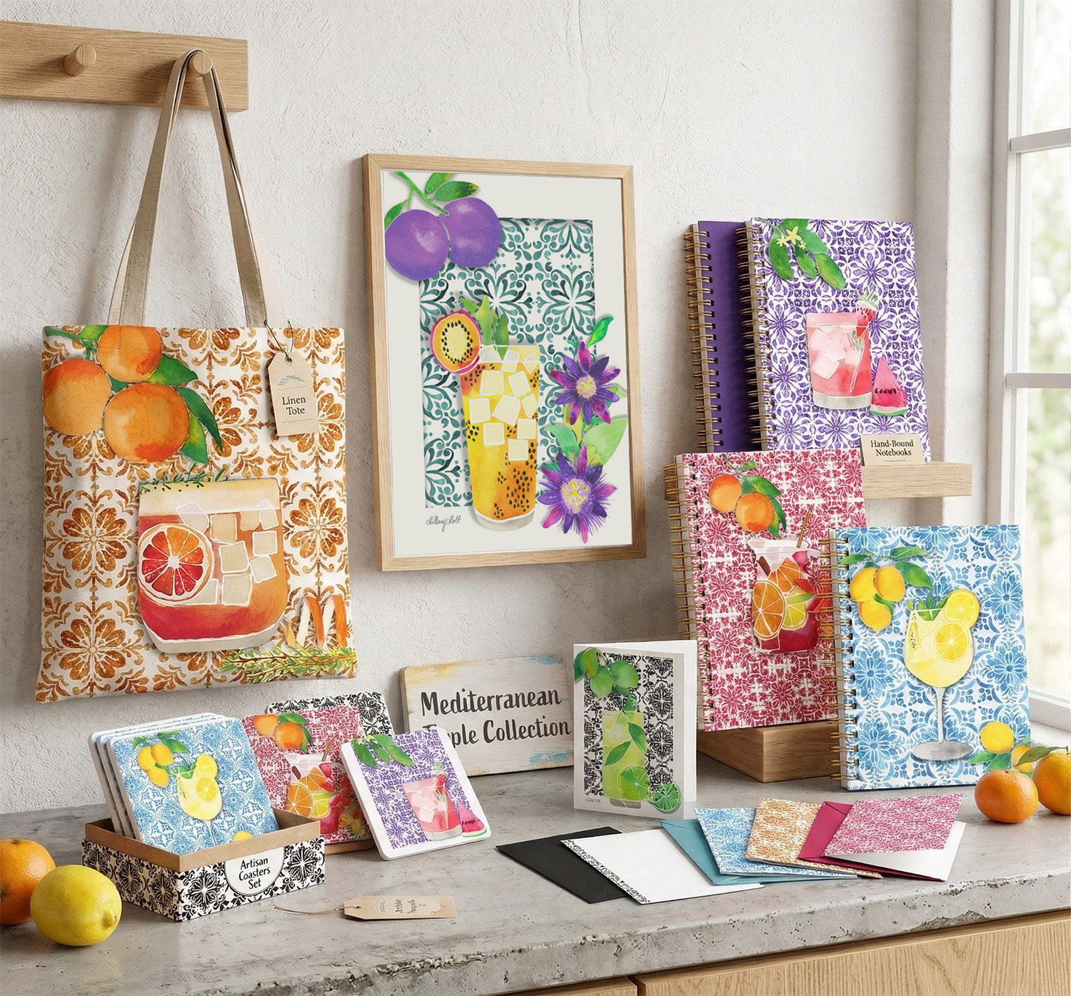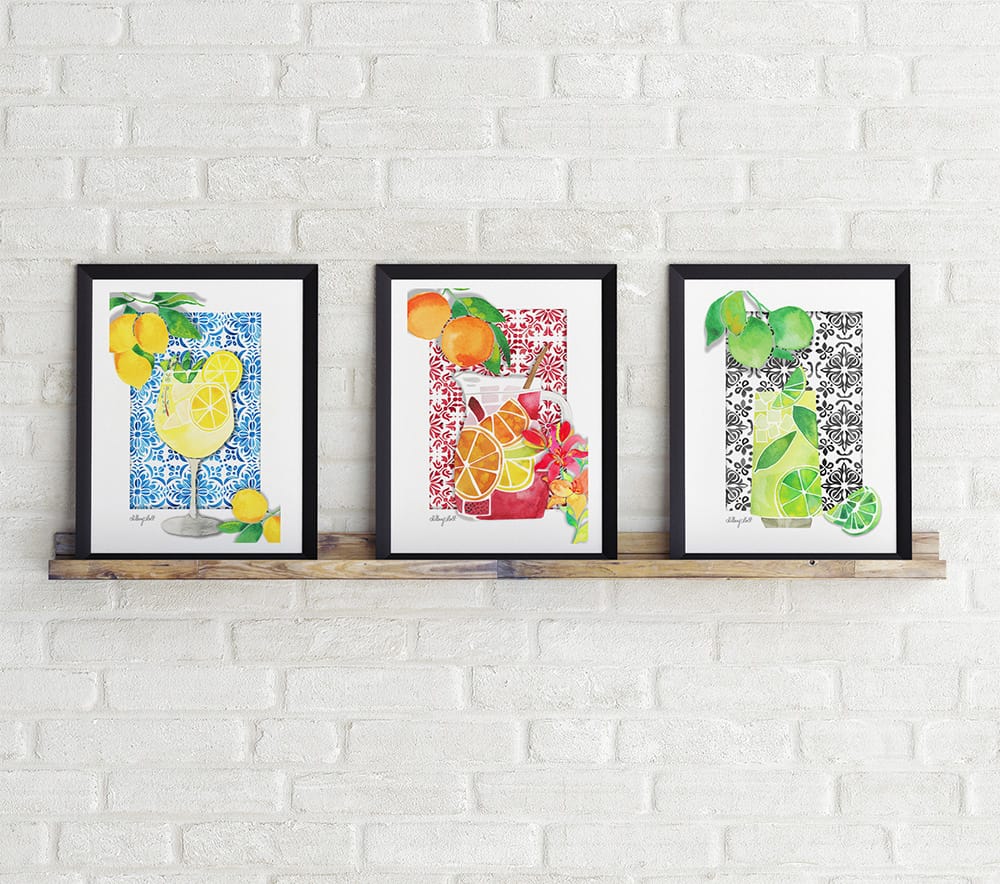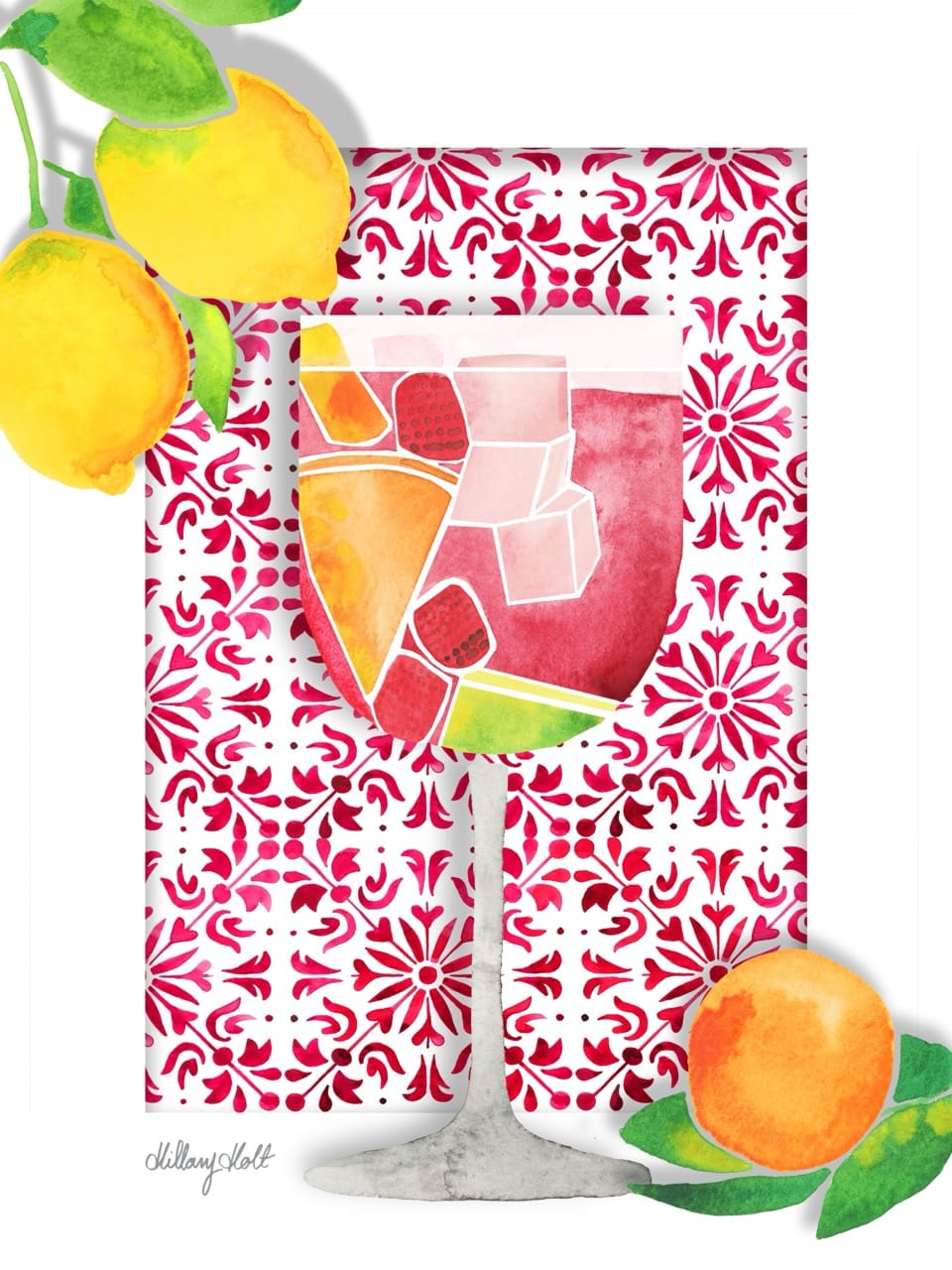 Immerse in the vibrant essence of Mediterranean culture and celebrate La Dolce Vita with stunning illustrations inspired by refreshing cocktails. Featuring lively colors and intricate tile patterns, this collection showcases mojitos, sangrias, passionfruit palomas, negronis and limoncello spritz's. Perfect for home decor, stationery, and unique gifts, these artworks bring a cheerful Mediterranean spirit to any surface.